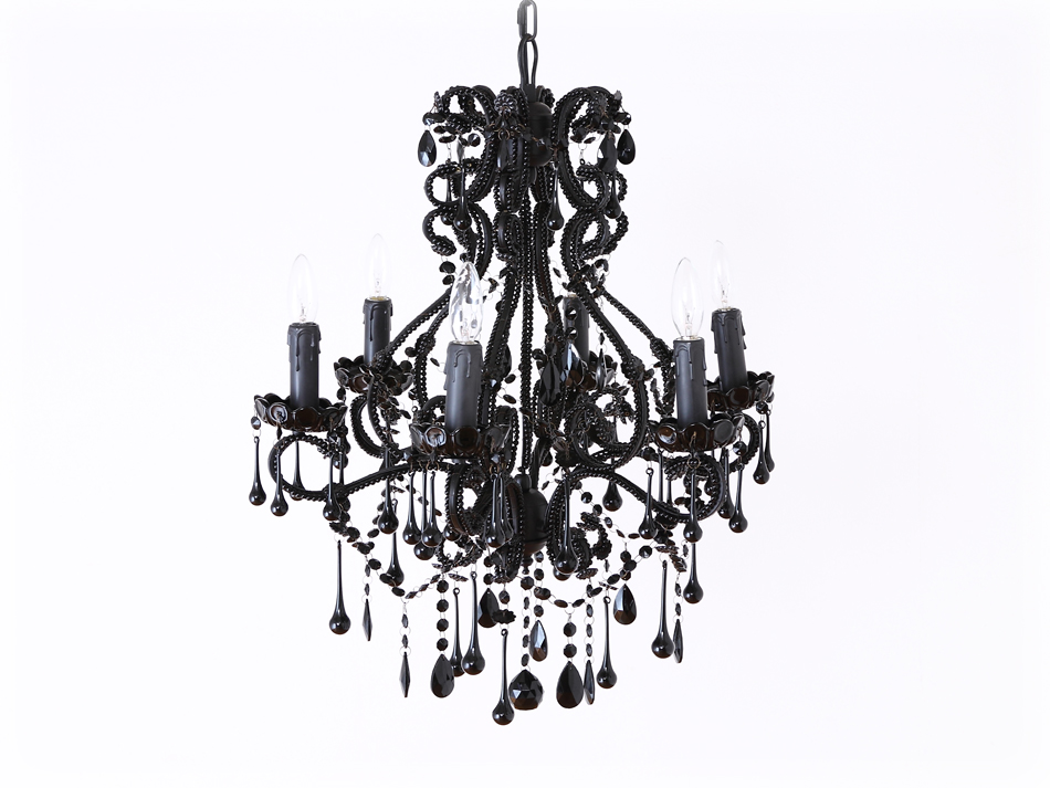 ブラッククリスタル ビーズ&ドロップ ケージスタイル シャンデリア(6灯)