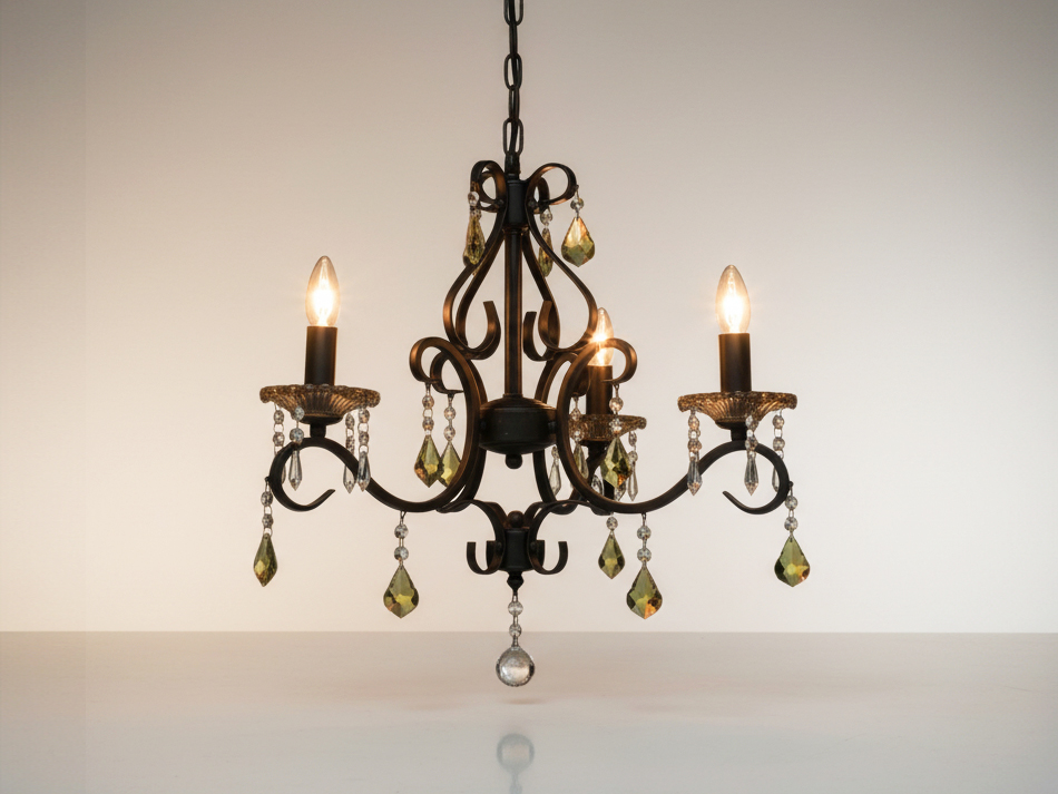 アンバークリスタルガラス & ロートアイアン シャンデリア(3灯)
