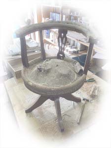 表層の詰め物だけ、衛生面を考え、現代のウレタンや綿などと交換し、座り心地を整えます。