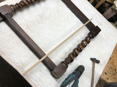 軸には硬く折れにくい、楢材の丸棒を製作し、使用しました。